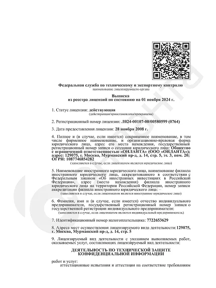 Выписка Лицензия ФСБ