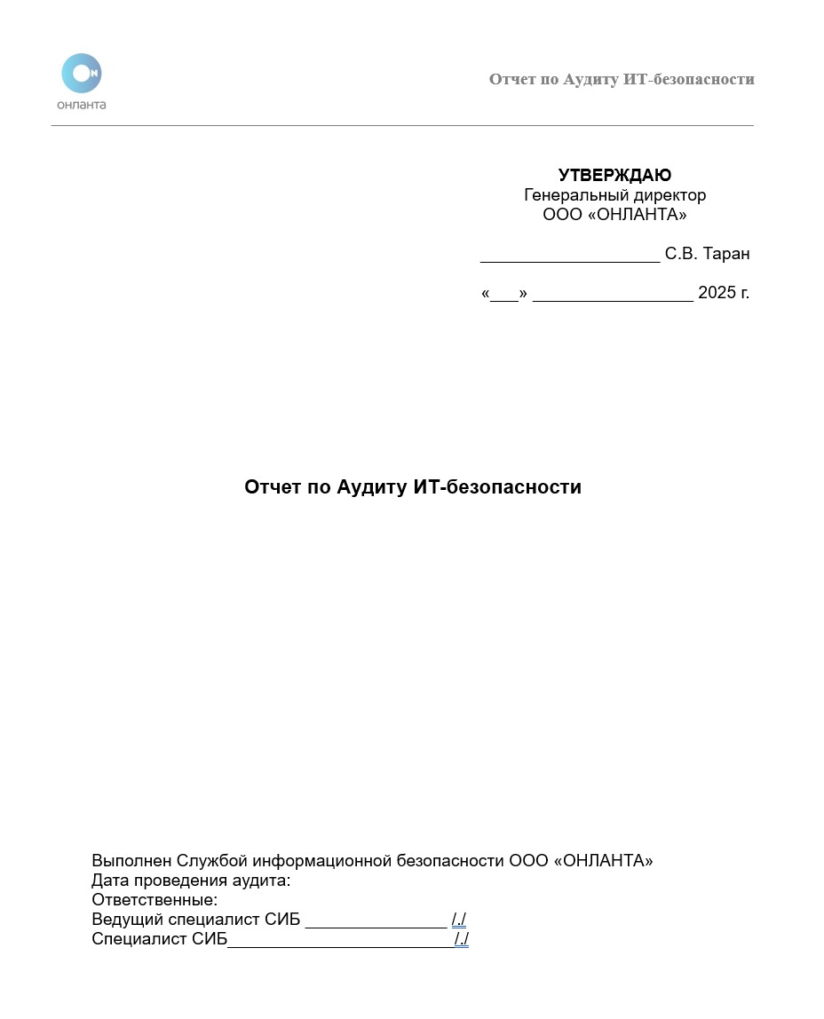 Данный отчет содержит результаты комплексного анализа состояния информационной безопасности организации и оценку всех ключевых аспектов